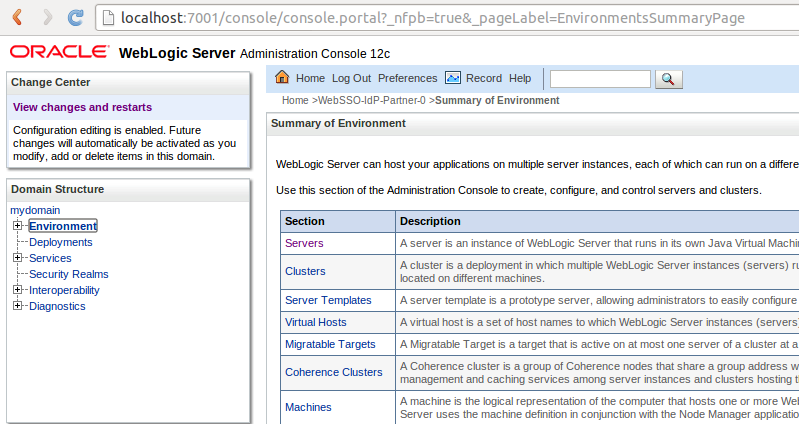 1. Go to Environment --> Servers and Click on myserver(admin).